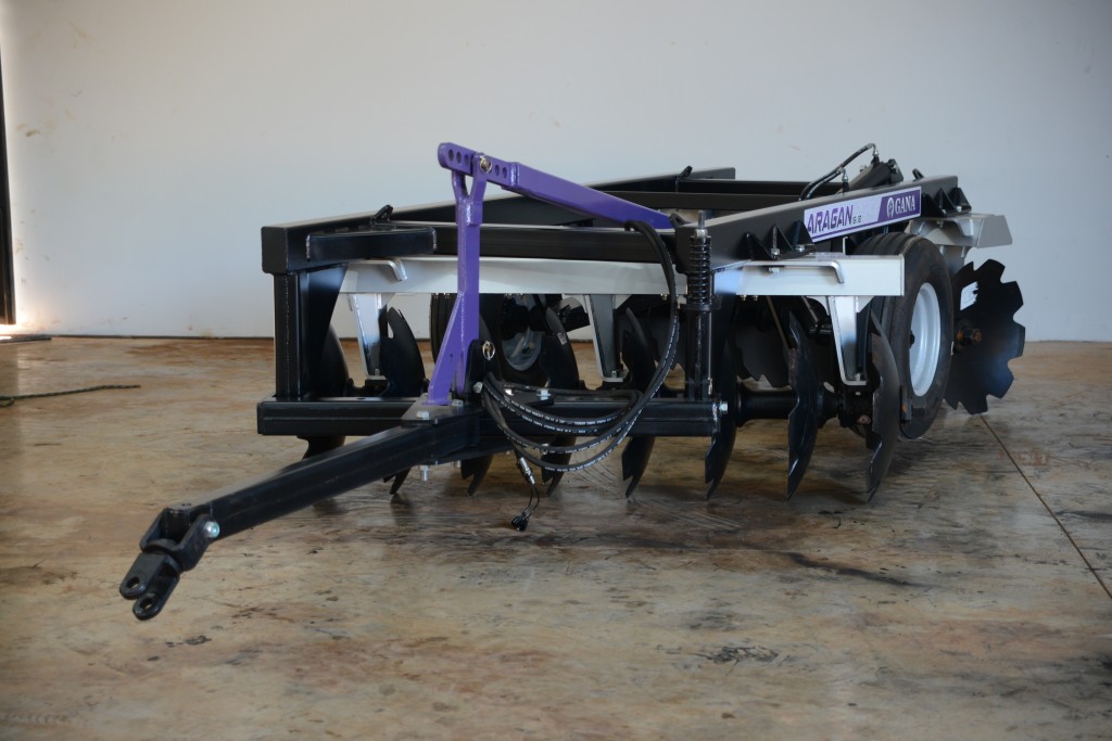 GRADE ARADORA INTERMEDIARIA CONTROLE REMOTO, com discos de 26 ‘’ ou 28'’, espaçamento entre discos de 270 mm para pequenas e médias propriedades é ideal para o preparo e renovação de solos e pastagens, corte e profundidade intermediaria possui mancais e separadores de altíssima resistência, disposta de uma excelente relação entre peso e ângulo de corte garantindo a profundidade de trabalho com o melhor acabamento. Esta versão esta equipada com cilindro hidráulico para controle remoto que facilita as operações de transporte e movimentos.