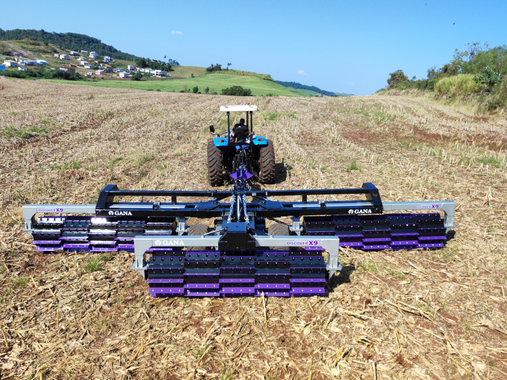 DISCOVER X9A, implemento com chassis articulado, com sistema 100 % hidráulico para abertura e fechamento, com três rolos e sistema de acionamento hidráulico auto transportável. Inovador em flexibilidade onde cada um dos três rolos trabalha de forma independente, o rolo central é disposto de um dispositivo pantógrafo de elevação que proporciona nivelamento na horizontal e na vertical, permitindo o trabalho em diversos ângulos, com corte independente por rolo permite a qualidade de trabalho em solos mais ondulados, sua flexibilidade possibilita trabalhar de forma independente ao posicionamento do trator com o solo, Fundamental para o mantimento da matéria orgânica e combate das plantas daninhas, com suas navalhas fazem o corte ou dobramento da cobertura vegetal, abrindo pequenas ranhuras no solo auxiliando na infiltração das águas diminuindo os níveis de errosões, preservando a umidade e nutrientes do solo, e auxiliando na velocidade de plantio pois a cobertura orgânica e vegetal estará desmembrada.